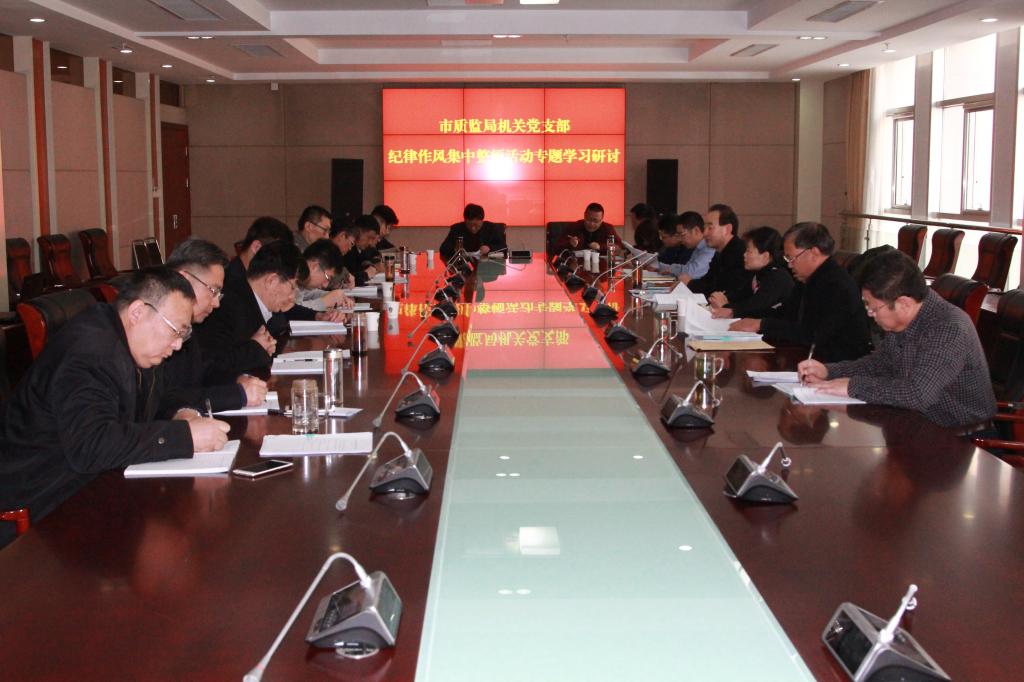 为深入推进全局纪律作风建设集中整顿活动,根据《临沂市质监局干部职工纪律作风集中整顿活动实施方案》部署要求,2月27日上午,市质监局机关党支部召开专题学习研讨会,市纪委派驻八组副组长全先淑同志莅临会议指导,机关支部党员、入党积极分子及部分党外同志参加会议。市局领导班子成员王世标、梅杰、秦永升、黄波、解晓东同志以普通党员身份参加学习研讨。机关党支部书记杨启光同志主持会议。