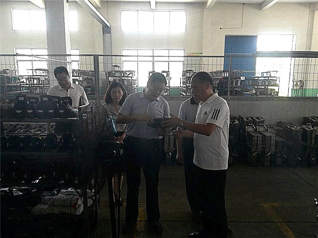6月27日,市质监局党组成员、副调研员韩波一行到沂南调研制鞋产业发展情况,县领导孙爱军陪同。